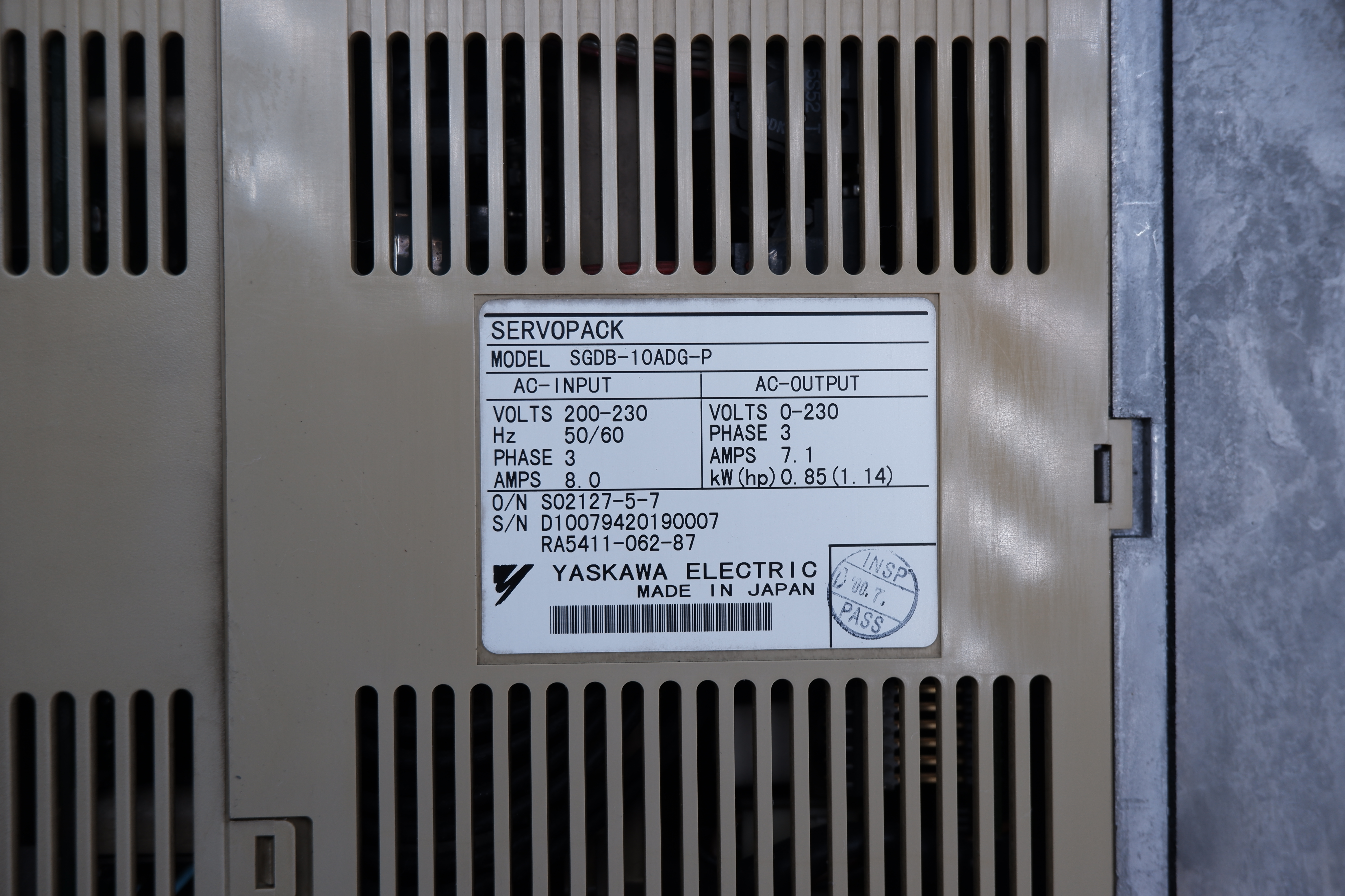 MANUFACTURER : YASKAWA   MODEL : SERVOPACK SGDB-10ADG-P