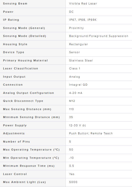 Range: 110 mm; Input 12-30 V dc