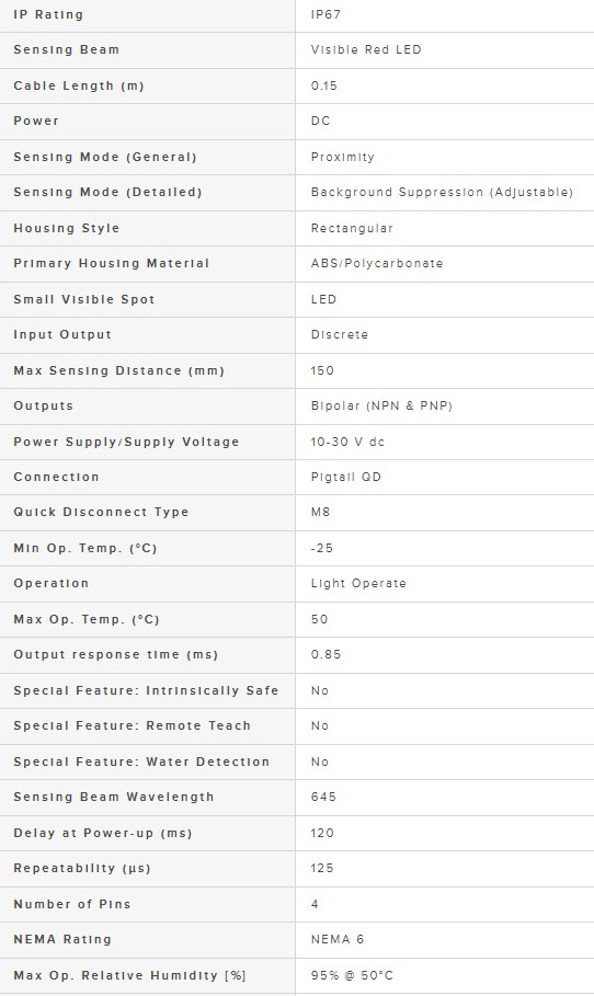 Range: 18-150 mm, Input 10-30 V dc