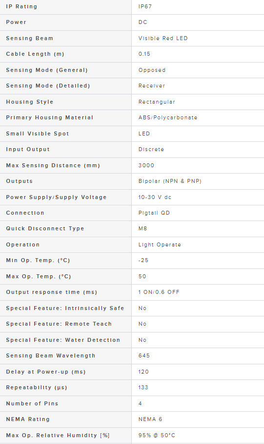 Range: 3000 mm, Input 10-30 V dc