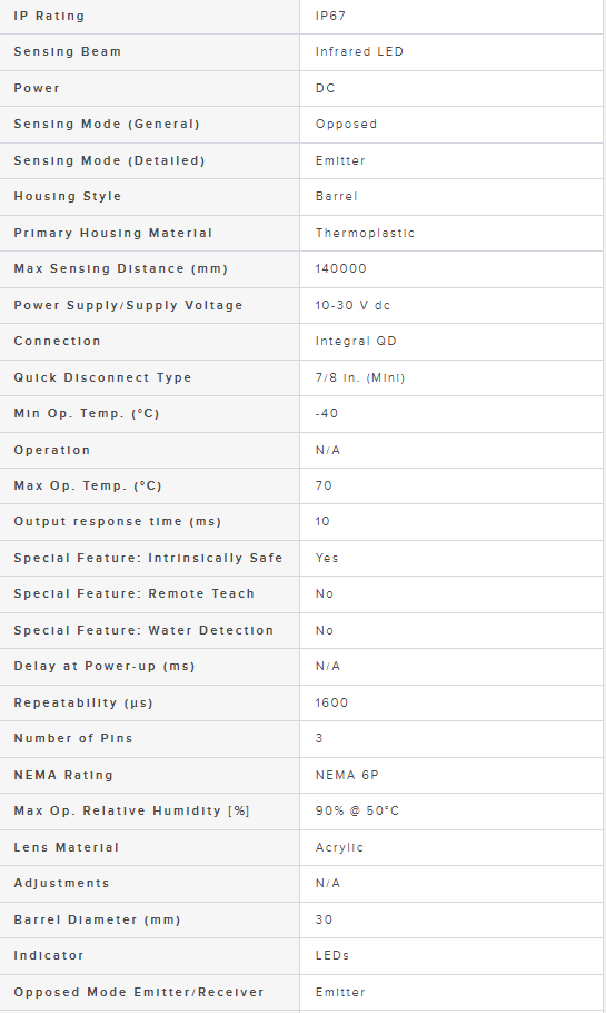 Range: 140 m; Input: 10-30 V dc