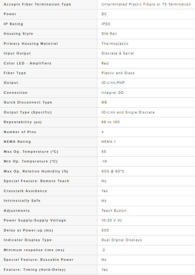 D10BFPQ Sensor for use with Plastic Fiber Optics