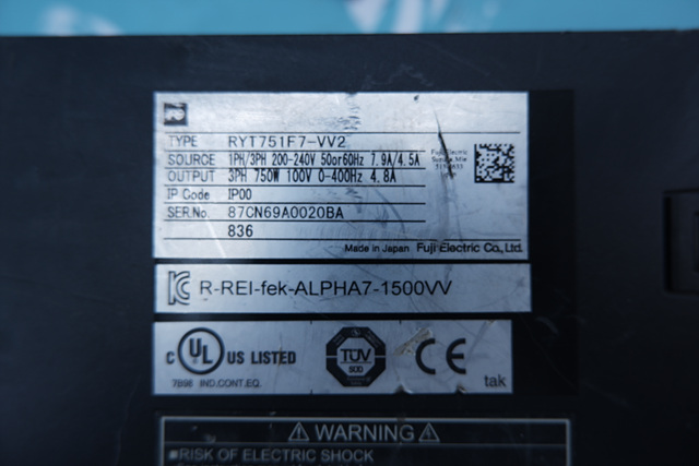MANUFACTURER : FUJI MODEL : SERVO DRIVER RYT751F7-VV2