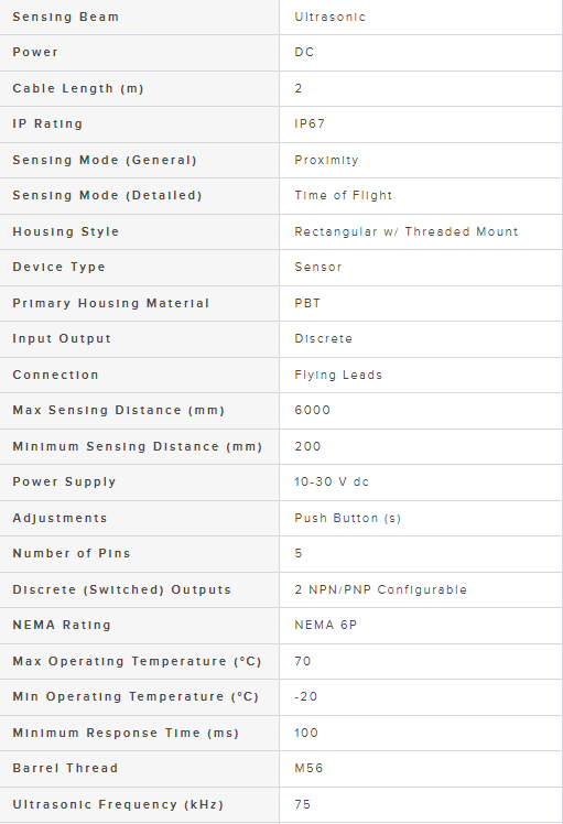Range: 200 mm - 6 m; Input: 10-30 V dc