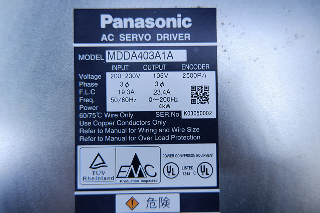 MANUFACTURER : PANASONIC MODEL : AC SERVO MDDA403A1A