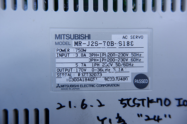MANUFACTURER : MITSUBISHI MODEL : AC SERVO MR-J2S-70B-S188 (NO COVER)