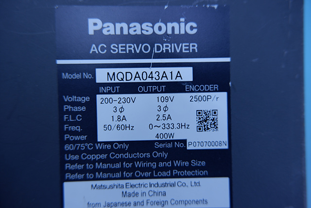 MANUFACTURER : PANASONIC MODEL : AC SERVO MQDA043A1A