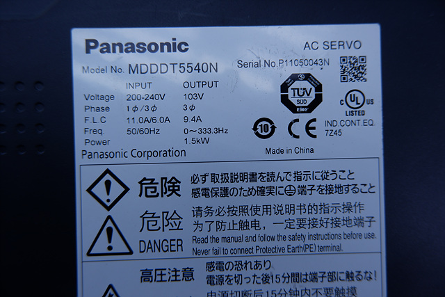 MANUFACTURER : PANASONIC MODEL : SERVO DRIVER MDDDT5540N