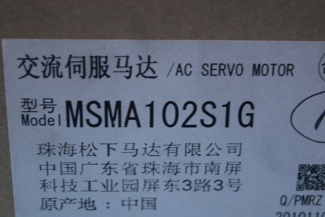 MANUFACTURER : PANASONIC MODEL : SERVO MOTOR MSMA102S1G
