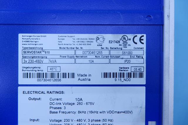 MANUFACTURER : KOLLMORGEN MODEL : SERVOSTAR 610