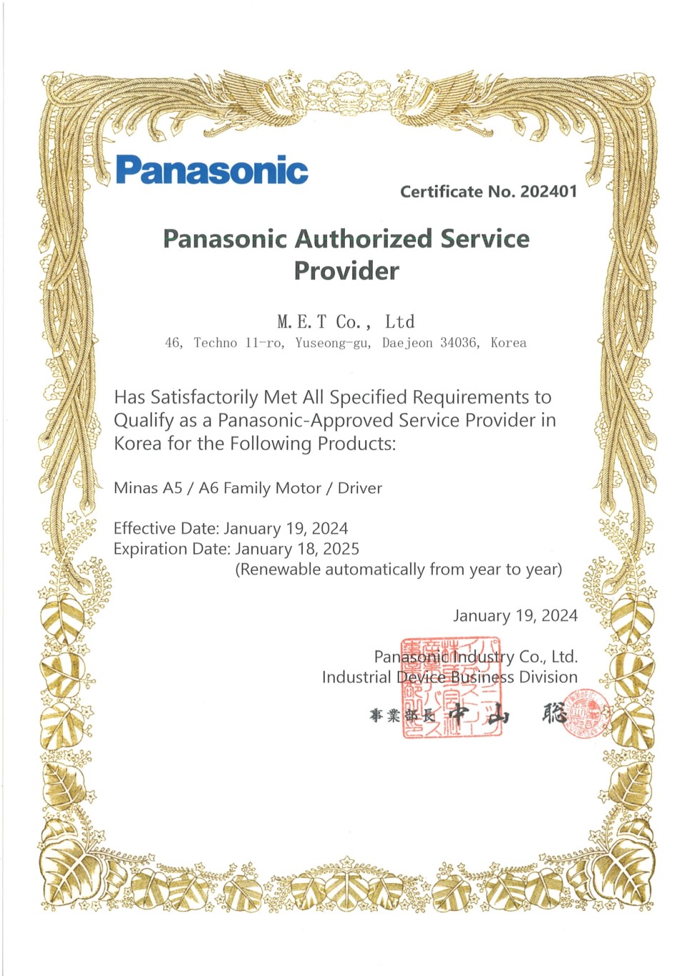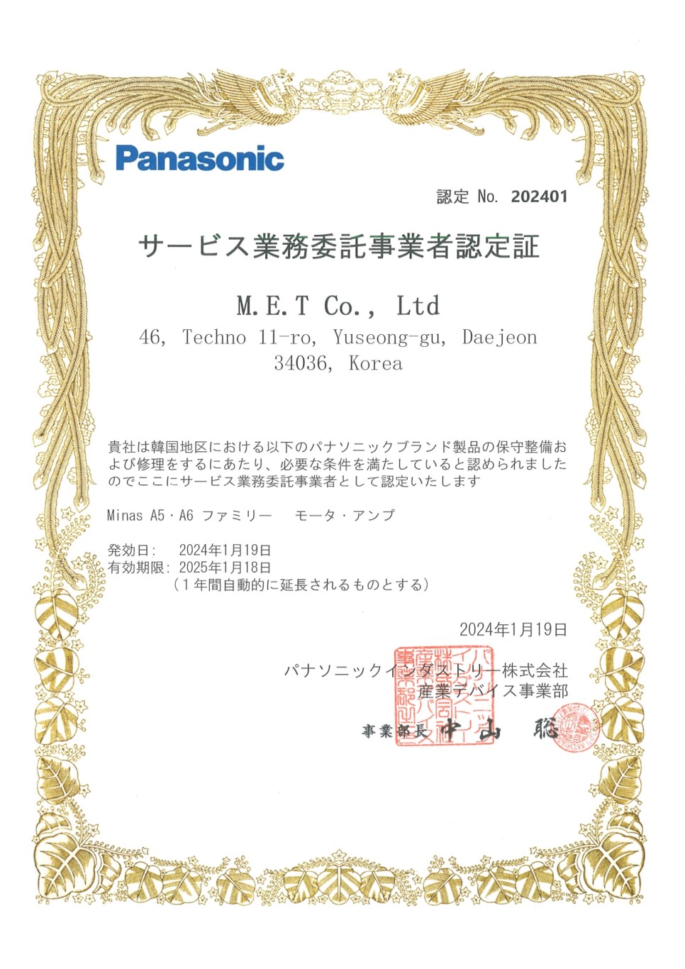 파나소닉과 엠이티는 2018년도부터 계약을 체결해서