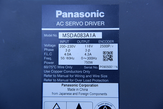 MANUFACTURER : PANASONIC MODEL : AC SERVO DRIVER MSDA083A1A