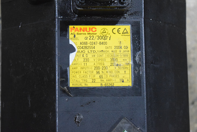 MANUFACTURER : FANUC MODEL : AC SERVO MOTOR A06B-0247-B400 (CABLE BROKEN)