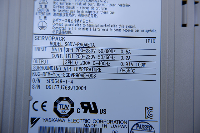MANUFACTURER : YASKAWA MODEL : SERVOPACK SGDV-R90AE1A / SGDV-OCA03A SET