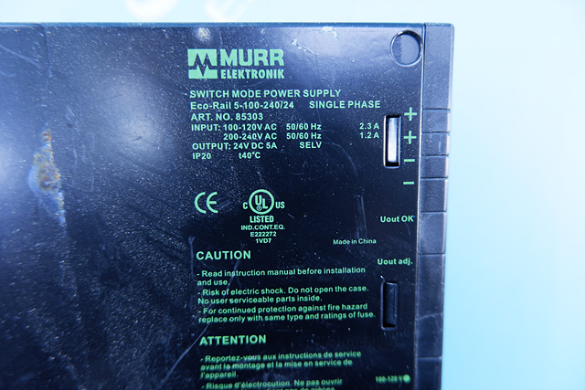 MANUFACTURER : MURRLELEKTRONIK MODEL : POWER SUPPLY 5-100-240/24 / 85303