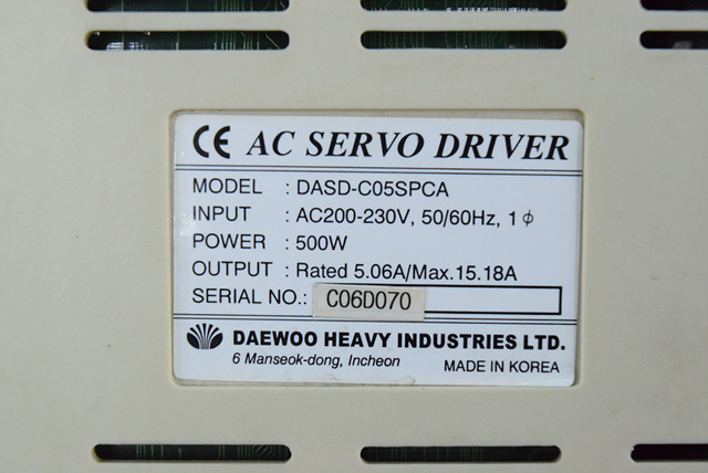 MANUFACTURER : DAEWOO MODEL : AC SERVO DRIVER DASD-C05SPCA
