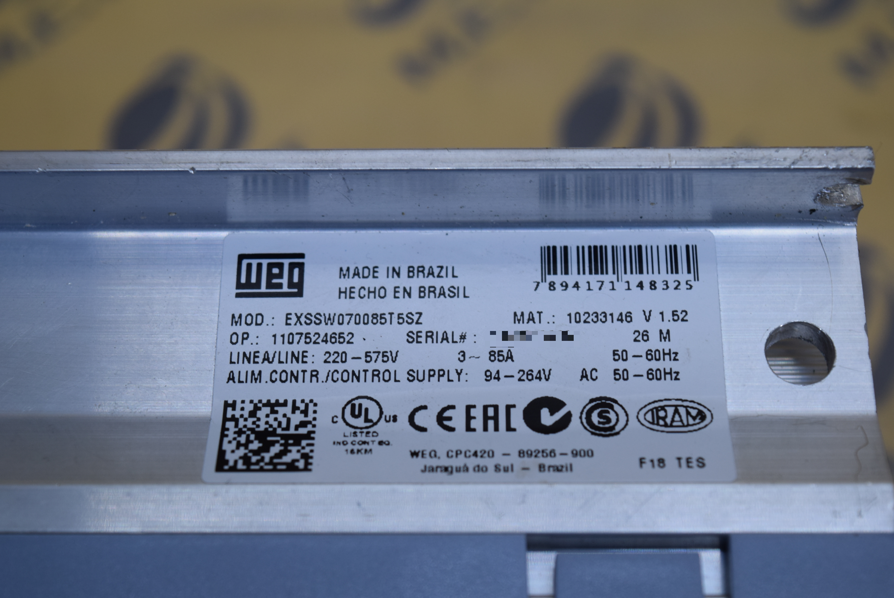 | 모델명 : EXSSW070085T5SZ 품목명 : SOFT STARTER 제조사 : WEG 증상 : 전원 불량 |