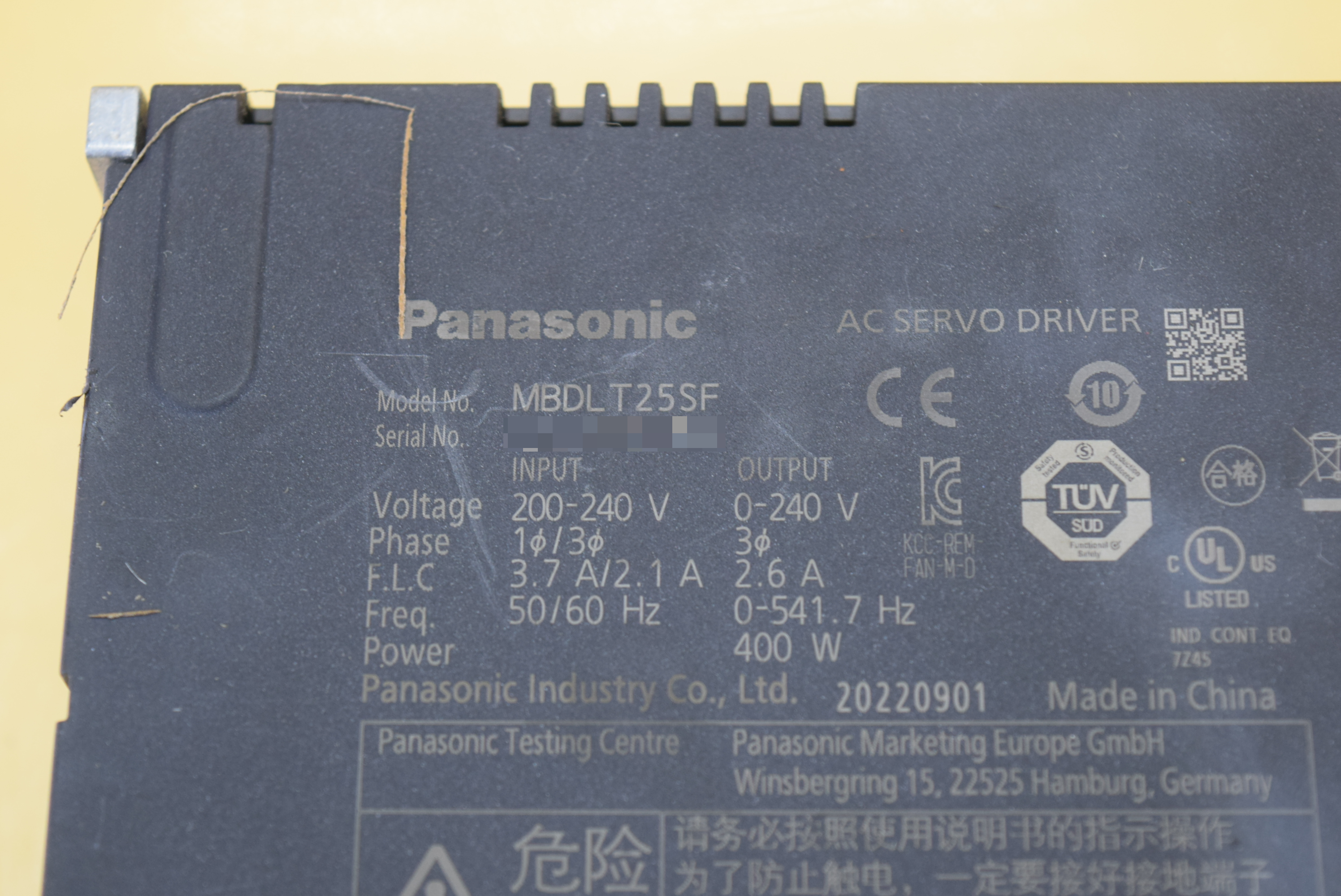 | 모델명 : MBDLT25SF 품목명 : SERVO DRIVER 제조사 : PANASONIC [공식서비스센터] 증상 : 파워 불량 |