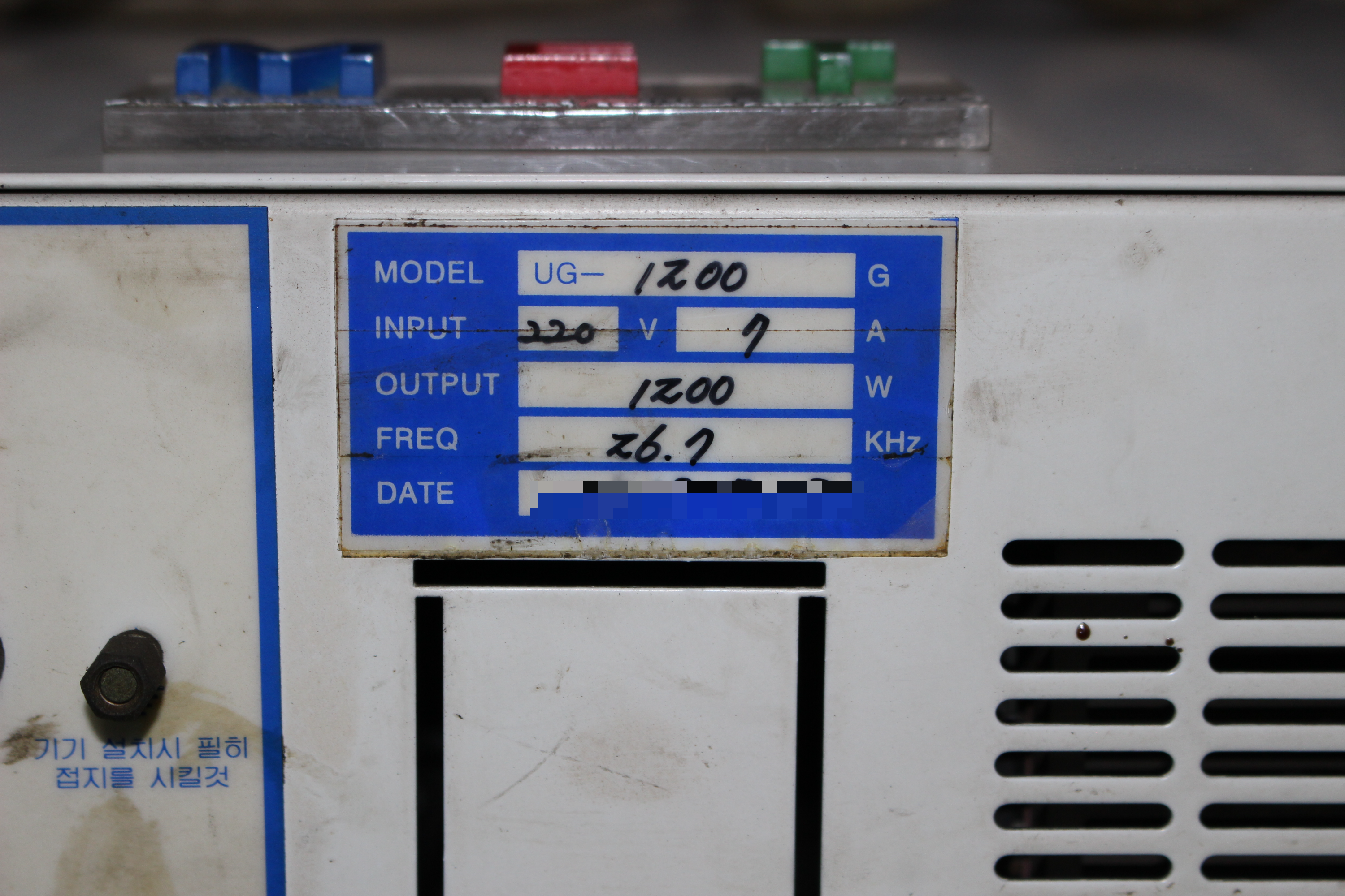 | 모델명 : UG-1200 품목명 : ULTRASONIC GENERATOR 제조사 : 대진초음파 증상 : 전원 불량 |