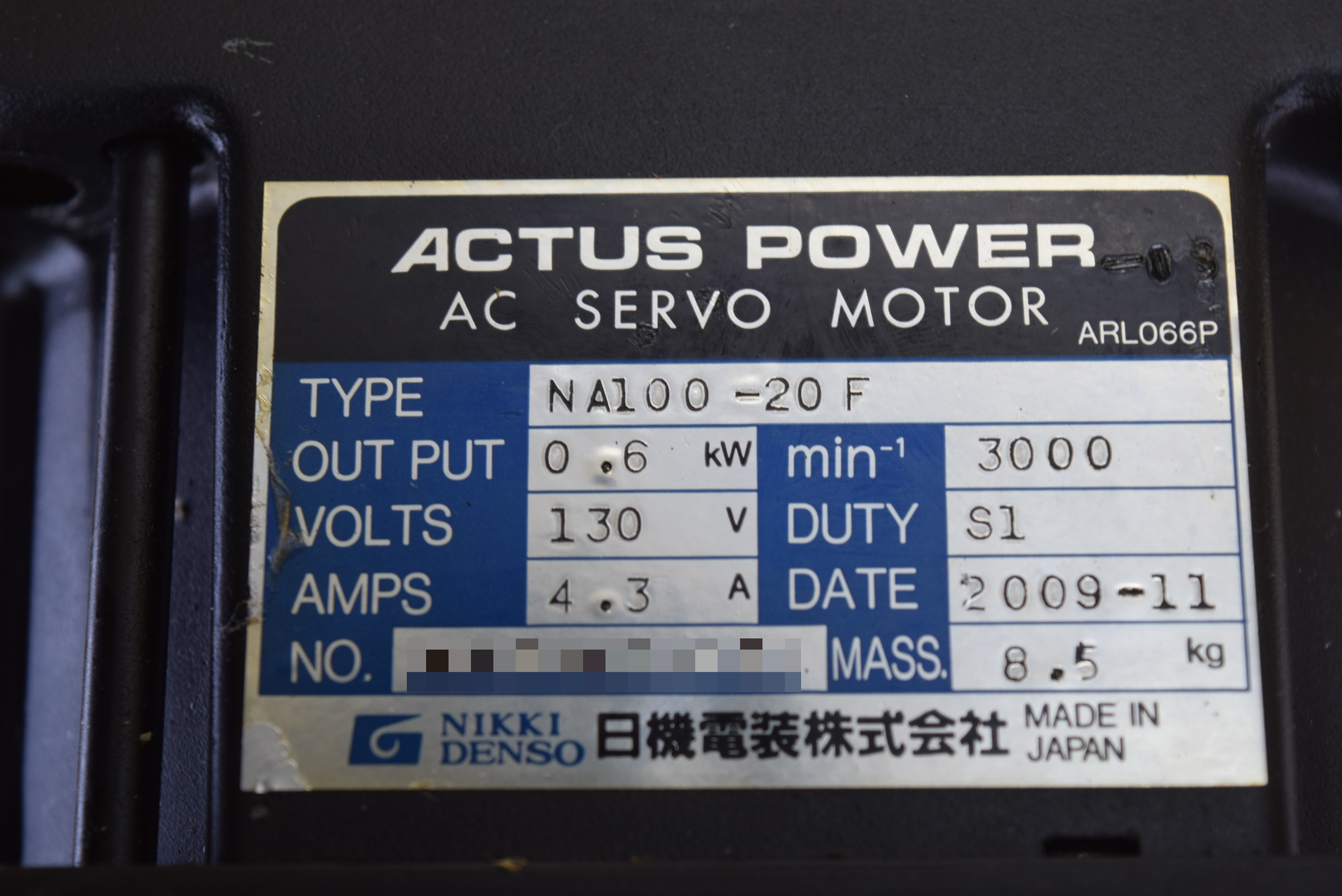 | 모델명 : NA100-20F 품목명 : SERVO MOTOR 제조사 : NIKKI DENSO |