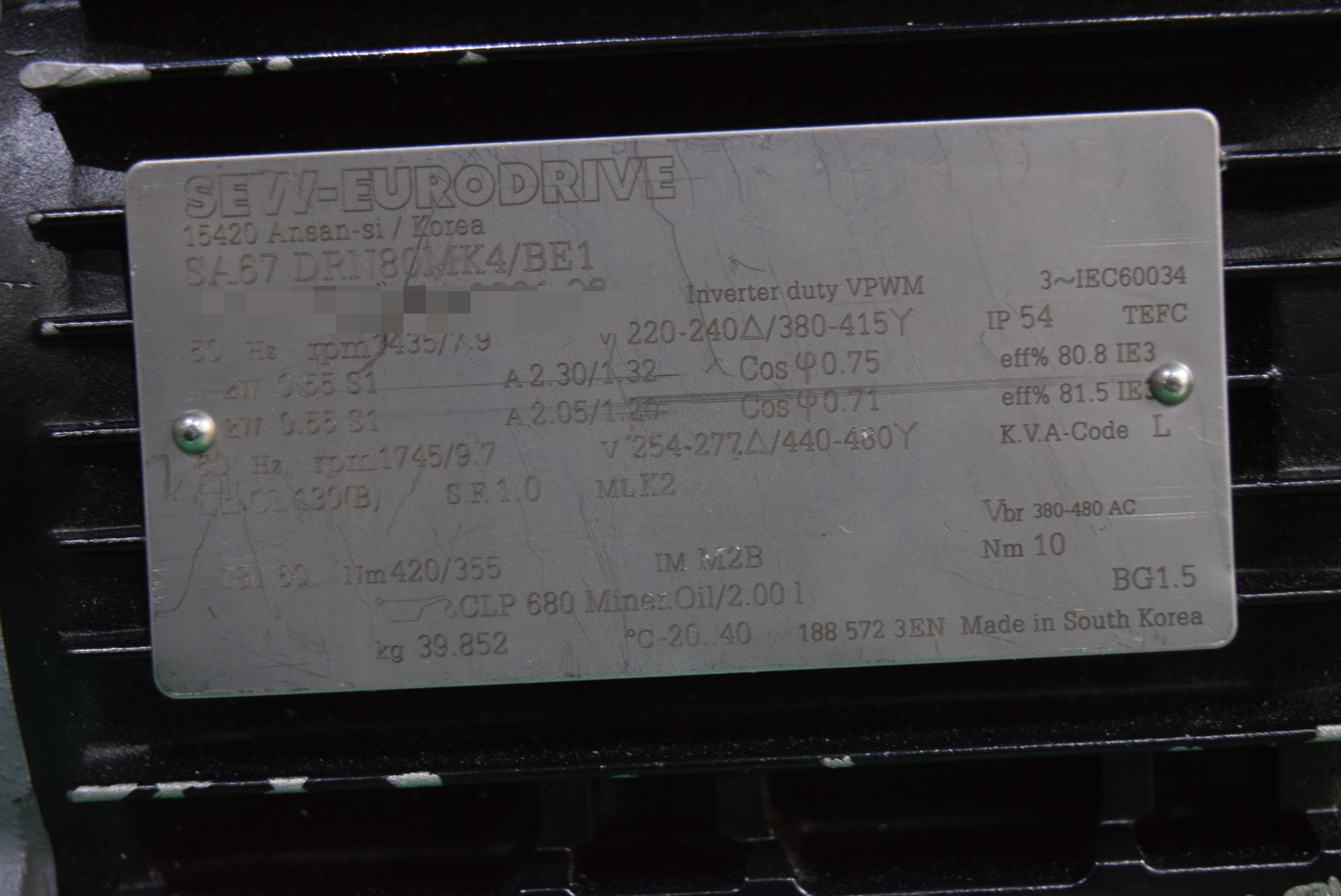 | 모델명 : SA67 DRN80MK4/BE1 품목명 : GETRIEBE MOTOR 제조사 : SEW-EURODRIVE |