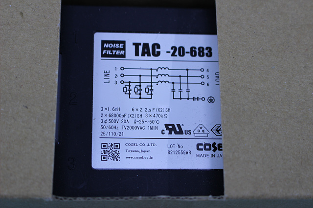 MANUFACTURER : COSEL MODEL : EMI/EMC FILTER TAC-20-683