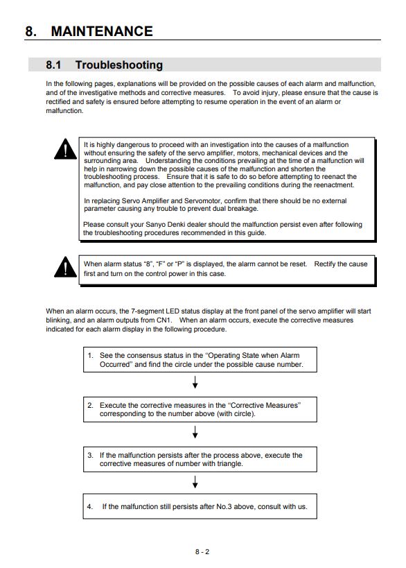 알람 및 트러블 슈팅 항목은 매뉴얼 8-2장에서 확인 가능합니다.