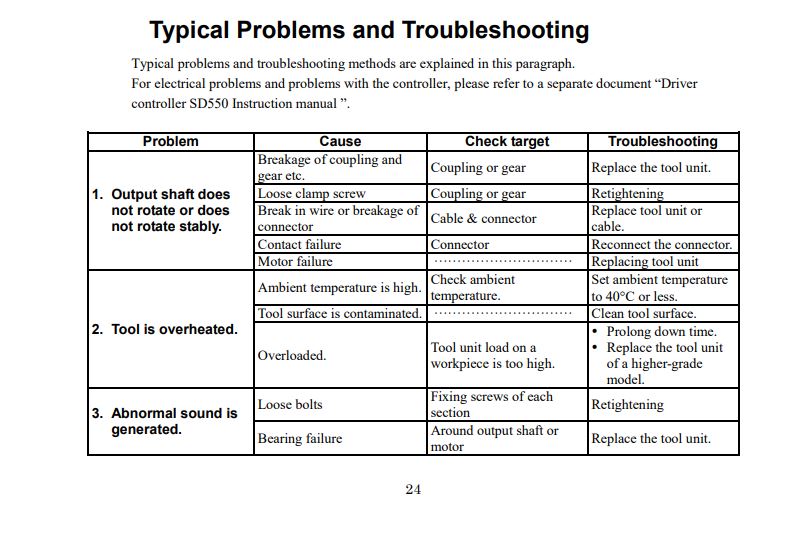 NITTO SEIKO KX Driver Series for SD550 NX Driver tool unit Manual 매뉴얼 입니다.