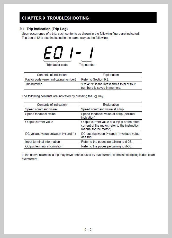 알람 및 트러블 슈팅 항목은 매뉴얼 9-1장부터 확인 가능합니다.