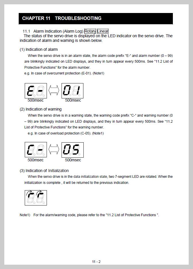 알람 및 트러블 슈팅 항목은 매뉴얼 11장에서 확인 가능합니다.