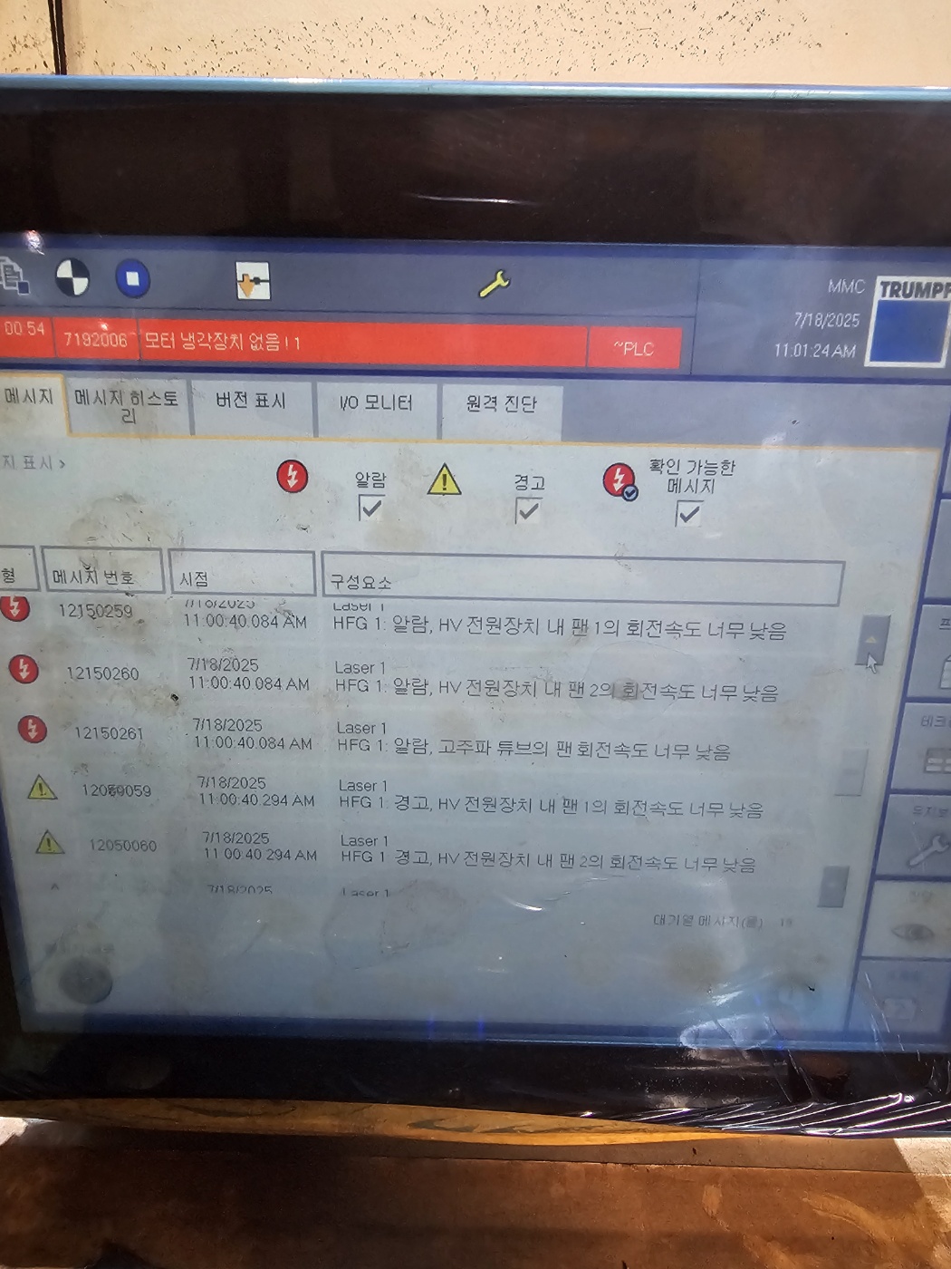 고객님께서 CONTROLLER에서 88알람이 발생한 후, 히트싱크 온도 알람 및 회전속도 알람을 포함한 다수의 알람이 발생하고 있다고 말씀해주셨습니다. 이러한 알람은 장비의 정상적인 작동을 방해하며, 운영 중단이나 생산성 저하를 초래할 수 있습니다. 이렇기 때문에 고객님께서 전체적인 점검을 요청하였습니다.